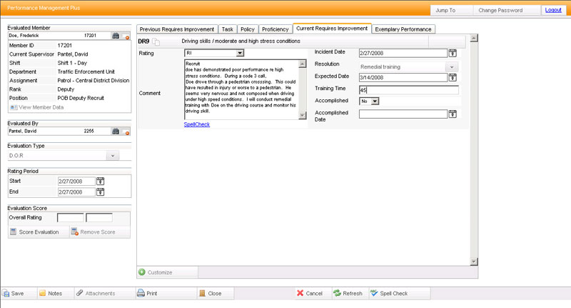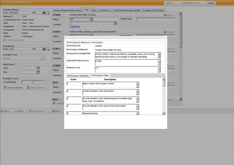The FTO Program Management module of our performance evaluation software is designed to enable systematic and accurate documentation of field training officers using standardized models for law enforcement. Performance deficiencies can be easily identified and documented, improvement plans generated and implemented, and performance reevaluated.