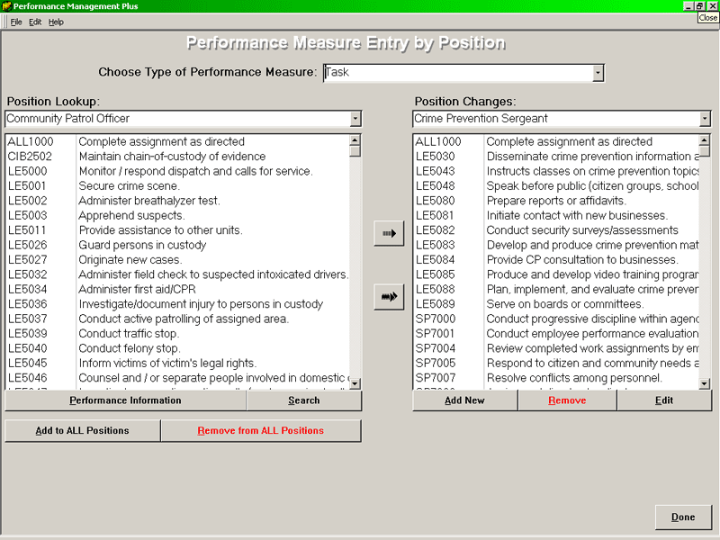 The Job/Task Analysis module enables the client to generate and update organization wide JTAs easily and efficiently at a fraction of the usual cost. The open architecture and dynamic design of the database allows the user to add, edit, and customize job positions, tasks, skill, abilities, standards, and performance steps.