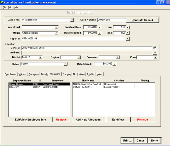 Administrative Investigations Management